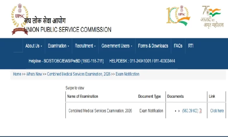 नई दिल्ली : संघ लोक सेवा आयोग (UPSC) ने कंबाइंड मेडिकल सर्विस (CMS) परीक्षा 2026…