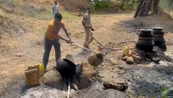 जंगल में बन रही थी शराब तभी पहुंच गई पुलिस 8 भट्टी 600 किलो महुआ रहन नष्ट किया पुलिस की ऑपरेशन आघात के तहत कार्रवाई…