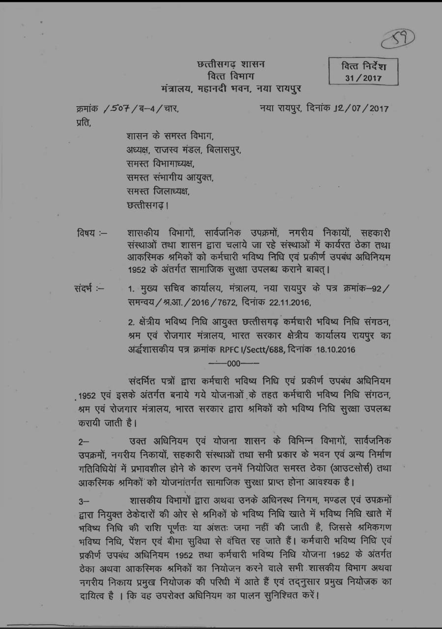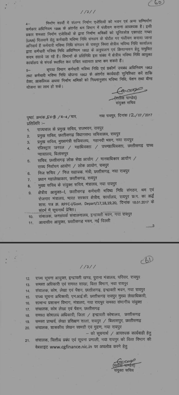 2. लोक निर्माण विभाग में शासन के वित्त निर्देश अनुसार ईपीएफ कटौती अनिवार्य रूप से लागू की जाए।