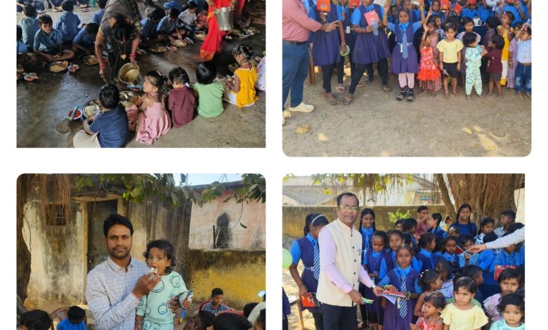 न्योता भोज का आयोजन कर स्कूल मे मनाया जन्मदिन