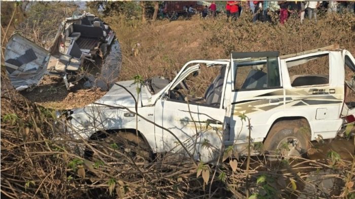 दुर्ग । दुर्ग में तेज रफ्तार पिकअप के चालक ने सामने से आ रहे सूमो को जोरदार टक्कर मार दी। इस दुर्घटना में सूमो के चालक की जहां मौके पर ही मौत हो गयी, वहीं एक अन्य को गंभीर चोट आई है। बताया जा रहा है कि पिकअप का चालक रॉन्ग साइड पर गाड़ी चला रहा था, जिससे ये भीषण दुर्घटना हुई। पुलिस ने आरोपी पिकअप चालक के खिलाफ अपराध दर्ज कर लिया है।