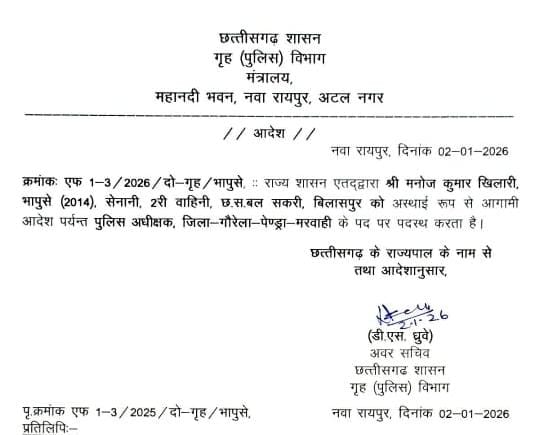 मनोज खिलारी होंगे GPM जिले के नए पुलिस अधीक्षक
