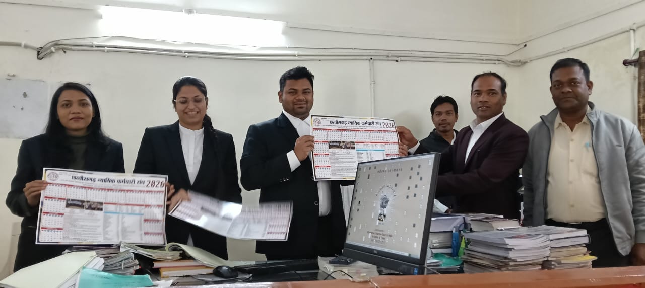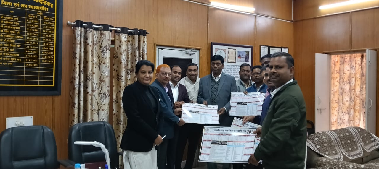 बिलासपुर। छत्तीसगढ़ उच्च न्यायालय के मुख्य न्यायाधिपति रमेश सिन्हा द्वारा छत्तीसगढ़ न्यायिक कर्मचारी संघ के वार्षिक कैलेंडर-२०२६ का गरिमामय समारोह में विमोचन संपन्न हुआ। विमोचन पश्चात जिला शाखा कोरबा के पदाधिकारियों द्वारा न्यायाधीशगणों को कैलेंडर की प्रतियां भेंट की गईं। प्रतिनिधिमंडल द्वारा कोरबा जिले के वरिष्ठ एवं कनिष्ठ न्यायाधीशों से शिष्टाचार भेंट कर उन्हें वार्षिक कैलेंडर भेंट किया गया।