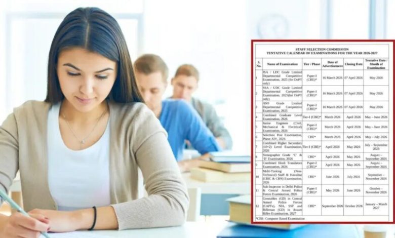 एसएससी : एसएससी की भर्तियों की तैयारी कर रहे है युवाओं के लिए बड़ा अपडेट है। कर्मचारी चयन आयोग (SSC) ने 2026-27 का परीक्षा कैलेंडर जारी कर दिया है। इस साल 12 भर्तियां निकलेंगी।