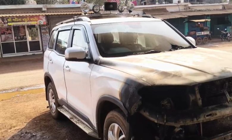 जिला पंचायत सदस्य की कार को लगाई आग, सीसीटीवी कैमरे में कैद आरोपी