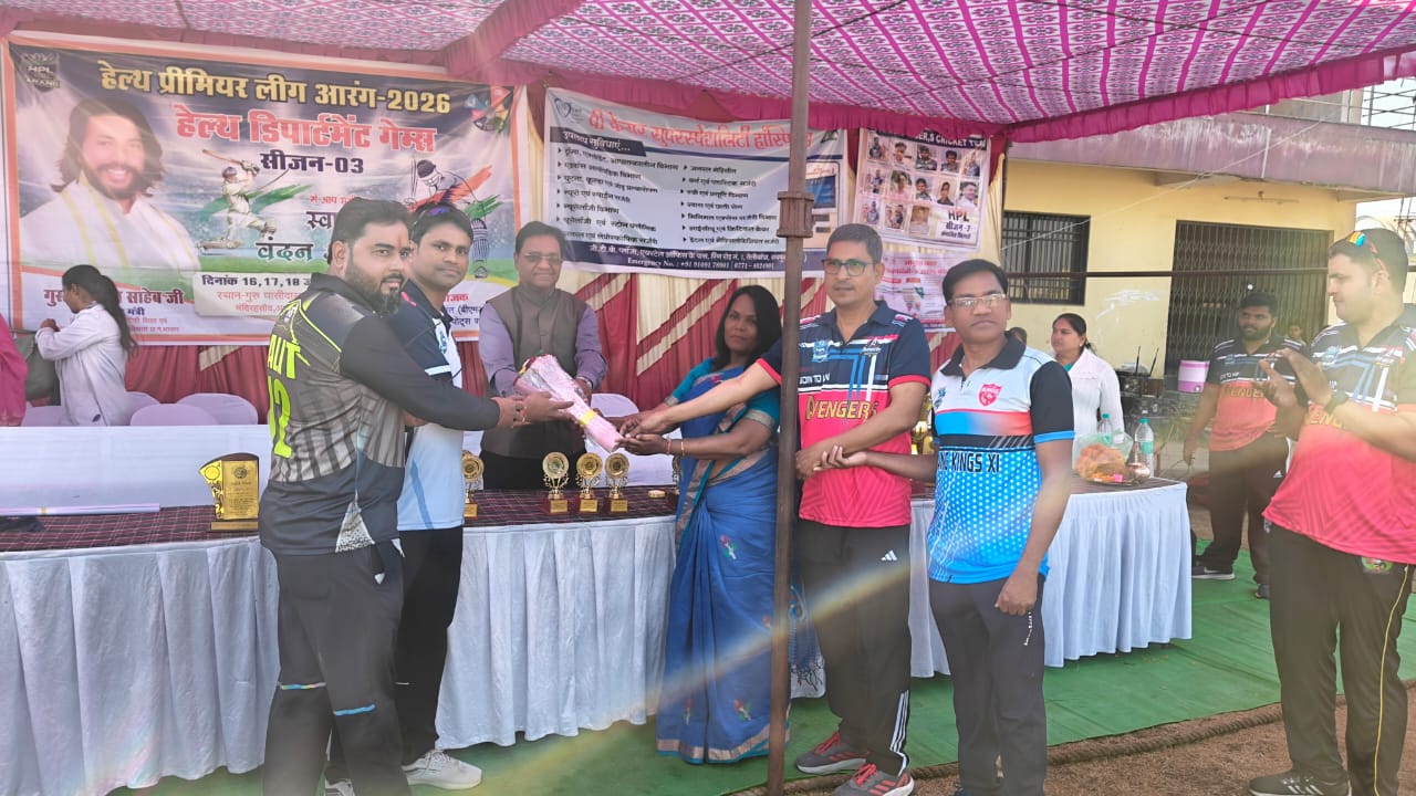 आरंग : हेल्थ स्पोर्ट कमिंटी आरंग के तत्वाधान मे क्रिकेट सद्भावना मैच का आयोजन किया गया जिसमे खंड चिकित्सा अधिकारी डॉ विजय लक्ष्मी अनंत अध्यक्षता हेल्थ स्पोर्ट कमेटी मेंबर के सदस्यों द्वारा चार टीम द अवेंजर्स मंदिर हसौद, आरंग टाइगर्स, आरंग किंग 11, द ईगल्स 11 बनाई गई चार टीम में स्वास्थ्य विभाग के खिलाड़ी जिसमें मेडिकल ऑफिसर्स एऍमओ, आरएचओ, सी एच ओ, फार्मासिस्ट,नेत्र सहायक, ऑपरेटर सभी स्वास्थ्य विभाग के खिलाड़ी भाग लिया सभी ने खेल भावना से खेल खेलते हुए ।
