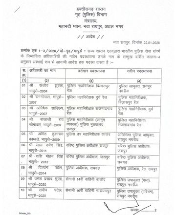 राजधानी में कमिश्नरी सिस्टम के सेटअप के लिए पिछले दिनों बड़े पैमाने पर भापुसे और राज्य पुलिस सेवा के अधिकारियों का तबादला किया गया था। नए सीपी और तत्कालीन बिलासपुर आईजी डॉ. संजीव शुक्ला समेत 15 अफसरों के कार्यस्थल में बड़ा फेरबदल हुआ था।