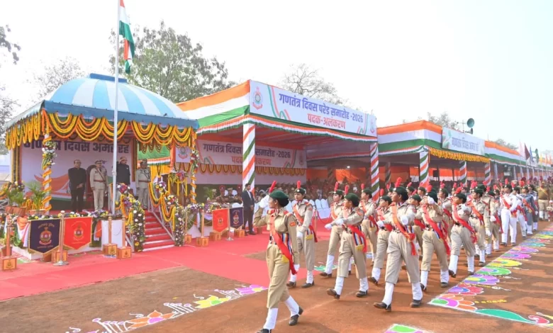 रायपुर। राज्यपाल रमेन डेका ने गणतंत्र दिवस के अवसर पर राजधानी रायपुर के पुलिस परेड ग्राउंड में राष्ट्रीय ध्वज फहराया और परेड की सलामी ली। उन्होंने परेड का निरीक्षण किया। इस दौरान मुख्य सचिव  विकास शील और पुलिस महानिदेशक अरूण देव गौतम भी उनके साथ थे। इस अवसर पर रमेन डेका ने कहा कि गणतंत्र दिवस का शुभ दिन राष्ट्र के लिए नए संकल्प लेने का दिन होता है। आइए यह संकल्प ले कि विकसित छत्तीसगढ़ निर्माण में अपनी पूरी भागीदारी देंगे।