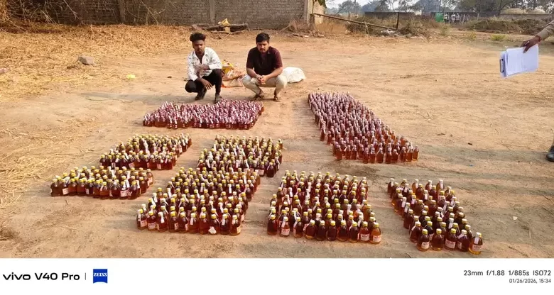 पुलिस से प्राप्त जानकारी के अनुसार, 26 जनवरी को सूचना मिली थी कि सारागांव निवासी हालेश्वर साहू और चंद्रशेखर साहू अपने चाचा के ब्यारा (बाड़े) में भारी मात्रा में शराब छिपाकर रखे हुए हैं और उसे खपाने की फिराक में हैं। इस सूचना पर पुलिस टीम ने घेराबंदी कर दोनों आरोपियों को धर दबोचा। तलाशी के दौरान पुलिस को प्लास्टिक की बोरियों में भरा हुआ कुल 1008 पौवा अवैध शराब (181 लीटर से अधिक) मिला, जिसमें देशी मसाला और अंग्रेजी व्हिस्की की बोतलें शामिल थीं।