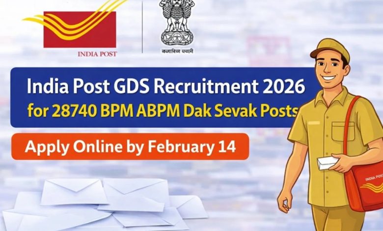 नई दिल्ली : भारतीय डाक विभाग की ओर से ग्रामीण डाक सेवक (GDS) के 28,740 पदों पर भर्ती के लिए आवेदन प्रक्रिया अब अपने अंतिम चरण में है। इस भर्ती अभियान के तहत देश भर के विभिन्न सर्किलों में ब्रांच पोस्टमास्टर (BPM) और असिस्टेंट ब्रांच पोस्टमास्टर (ABPM) के पदों को भरा जाना है। डाक विभाग ने स्पष्ट किया है कि रजिस्ट्रेशन की अंतिम तिथि 14 फरवरी, 2026 है, जबकि आवेदन शुल्क और फॉर्म सबमिट करने की अंतिम तिथि 16 फरवरी निर्धारित की गई है।