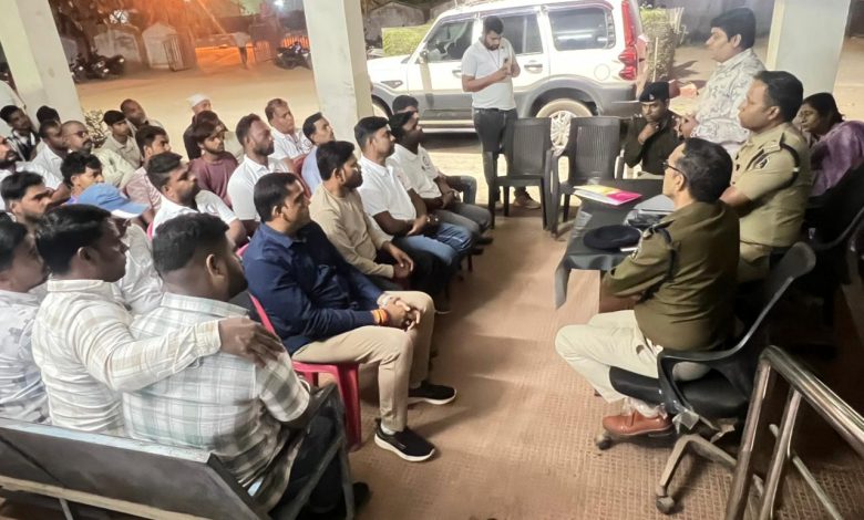 आरंग। पुलिस अधीक्षक (ग्रामीण) श्वेता श्रीवास्तव सिन्हा के निर्देशानुसार मंगलवार 17 फरवरी को थाना मंदिर हसौद परिसर में पुलिस मितानों की बैठक आयोजित की गई। बैठक में अभिषेक झा अतिरिक्त पुलिस अधीक्षक (ग्रामीण) रायपुर, लम्बोदर पटेल उप पुलिस अधीक्षक माना रायपुर एवं थाना प्रभारी मंदिर हसौद निरीक्षक आशीष यादव उपस्थित रहे। इस दौरान ऋषभ सोनी, चेयरमैन, जनहित फाउंडेशन रायपुर तथा फाउंडेशन के अन्य सदस्य भी सम्मिलित हुए।