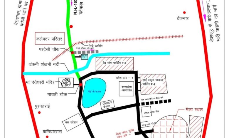 • 22.02.2026 से 26.02.2026: भारी वाहनों का आवागमन दंतेवाड़ा शहर के मुख्य मार्ग (एसबीआई बैंक चौक, जिला अस्पताल रोड, गायत्री चौक) से रात्रि 12 बजे से प्रातः 04:30 बजे तक होगा।
