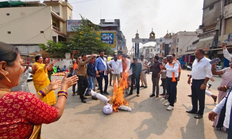 रायपुर : आई समिट में कांग्रेसियों कार्यताओं द्वारा किए गए आपत्तिजनक अर्धनग्न प्रदर्शन के विरोध में भाजपा किसान मोर्चा जिला बस्तर अध्यक्ष योगेश ठाकुर के नेतृत्व में गुरुनानक चौक जगदलपुर में पुतला दहन किया गया।