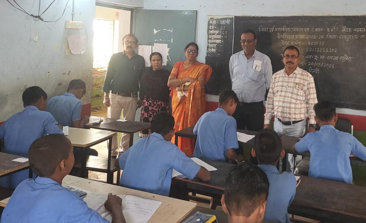 आरंग। स्कूली शिक्षा की गुणवत्ता और परीक्षाओं की शुचिता बनाए रखने के उद्देश्य से जिला शिक्षा अधिकारी रायपुर, हिमांशु भारतीय के मार्गदर्शन एवं विकासखंड शिक्षा अधिकारी दिनेश शर्मा के निर्देशन में आरंग विकासखंड में कक्षा 5वीं एवं 8वीं की केंद्रीयकृत परीक्षाओं का सुचारू संचालन किया जा रहा है। परीक्षाओं की पारदर्शिता सुनिश्चित करने के लिए विशेष निरीक्षण टीमों द्वारा लगातार केंद्रों का दौरा किया जा रहा है।