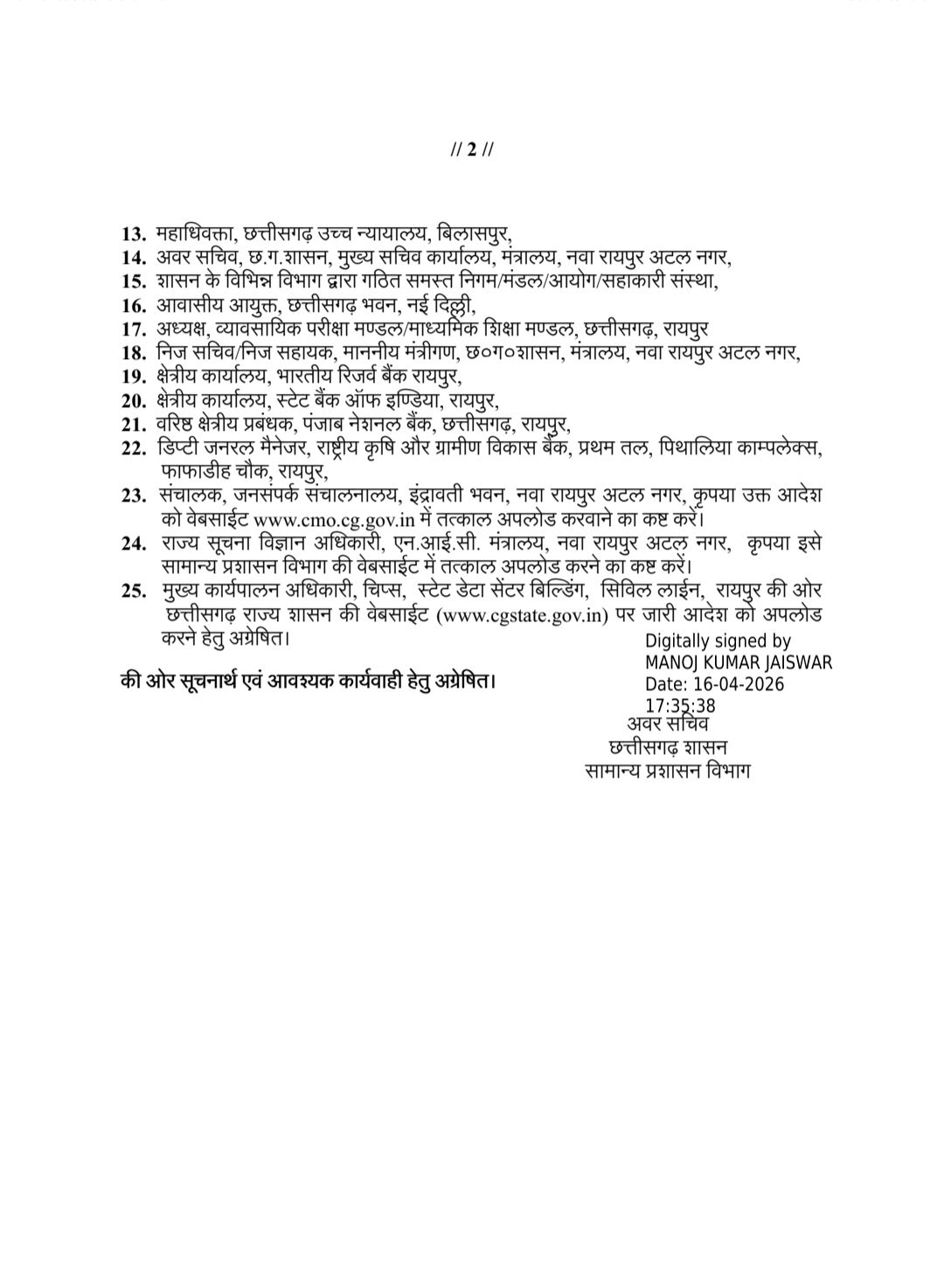 इन अवकाशों का लाभ जिले में कार्यरत राज्य सरकार के कार्यालयों, शासकीय संस्थानों और सरकारी कर्मचारियों को मिलेगा, हालांकि, बैंक, कोषालयों और उप कोषालयों के लिए यह अवकाश लागू नहीं होगा।