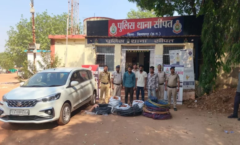 बिलासपुर। जिले के सीपत थाना क्षेत्र में पुलिस ने मोबाइल टावर से केबल और तार चोरी करने वाले एक सक्रिय गिरोह का पर्दाफाश किया है। पुलिस ने इस मामले में तीन आरोपियों को गिरफ्तार किया है, जबकि तीन विधि से संघर्षरत बालकों को किशोर न्याय बोर्ड भेजा गया है। आरोपियों के कब्जे से लाखों रुपये की चोरी की गई संपत्ति और एक कार भी बरामद की गई है।