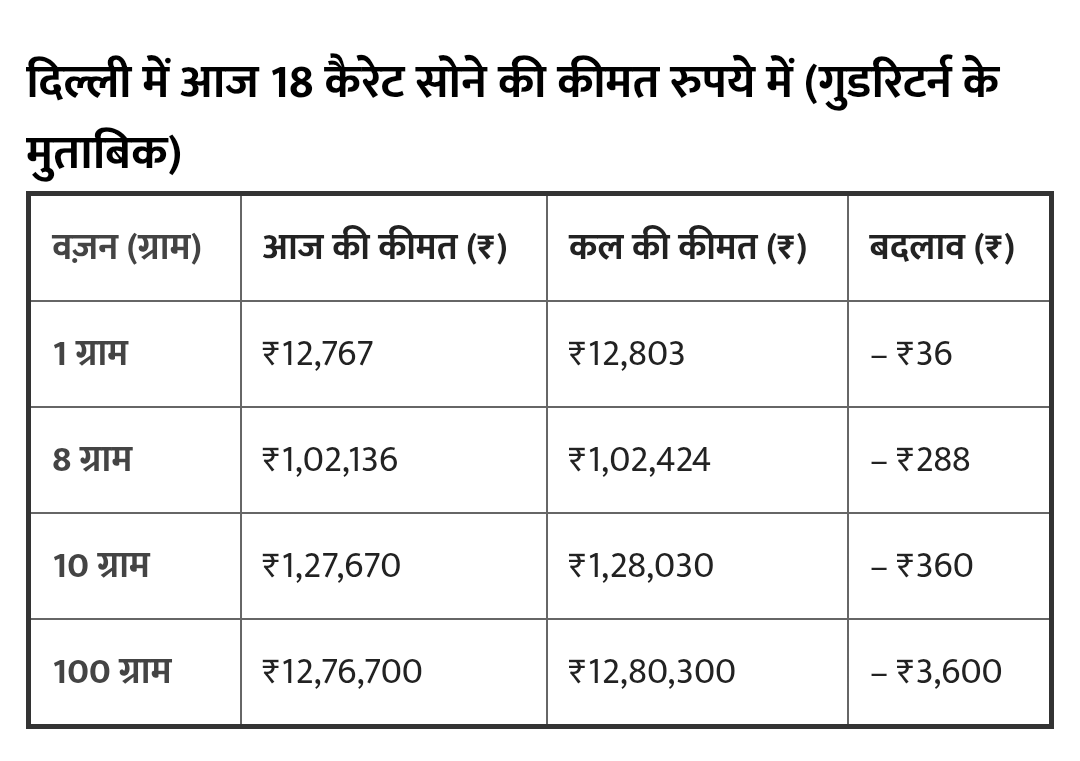 दिल्ली और अन्य शहरों में गोल्ड रेट