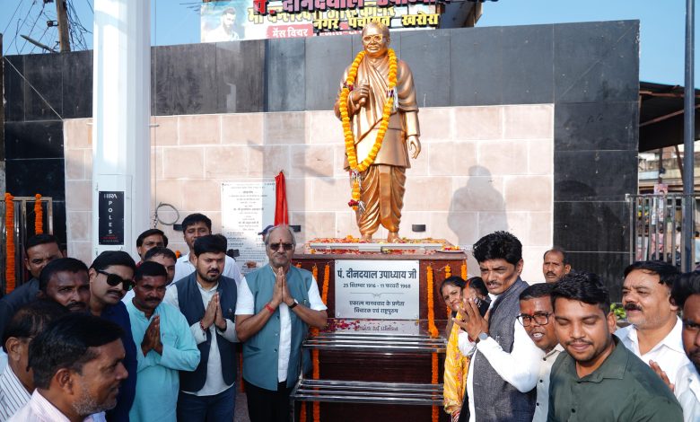 सांसद बृजमोहन ने खरोरा में किया पंडित दीनदयाल उपाध्याय की प्रतिमा का अनावरण एवं चौक सौंदर्यीकरण कार्य का लोकार्पण
