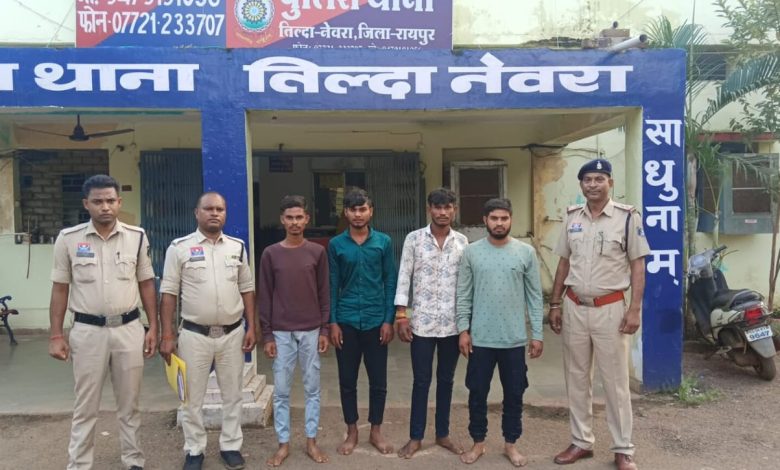 तिल्दा। तिल्दा नेवरा नगर के पास के गांव देवरी में दशहरे के दिन एक युवक के साथ मारपीट कर चाकू से हमला कर फरार 4 युवकों को पुलिस ने गिरफ्तार कर जेल भेज दिया है।