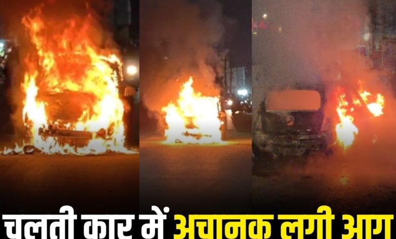 रायपुर में बड़ा हादसा! चलती कार में अचानक लगी आग, मची अफरातफरी का माहौल, देखें वीडियो…