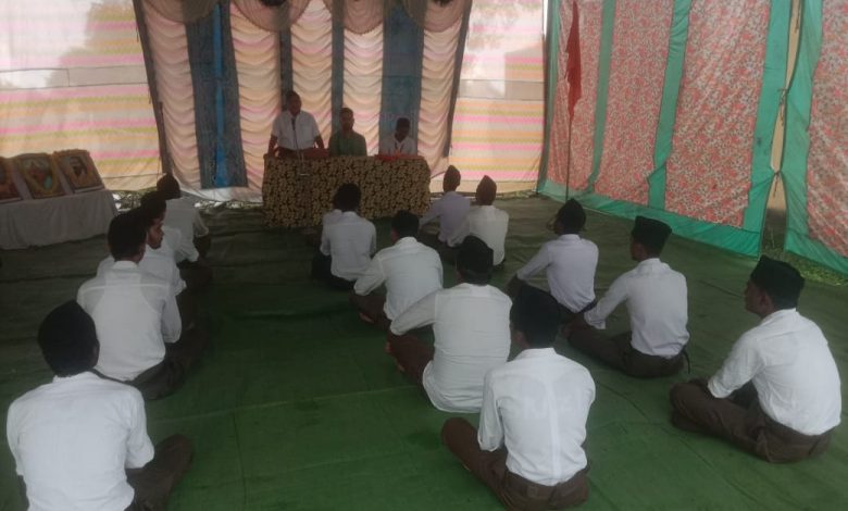 राष्ट्रीय स्वयंसेवक संघ कुरूद मंडल के कुटेला गांव में पथ संचलन