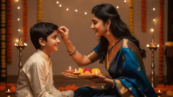 - भाई के माथे पर रोली या चंदन से तिलक लगाएं।
